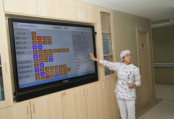 不久前,護理站電子白板在深圳某醫院亮相,