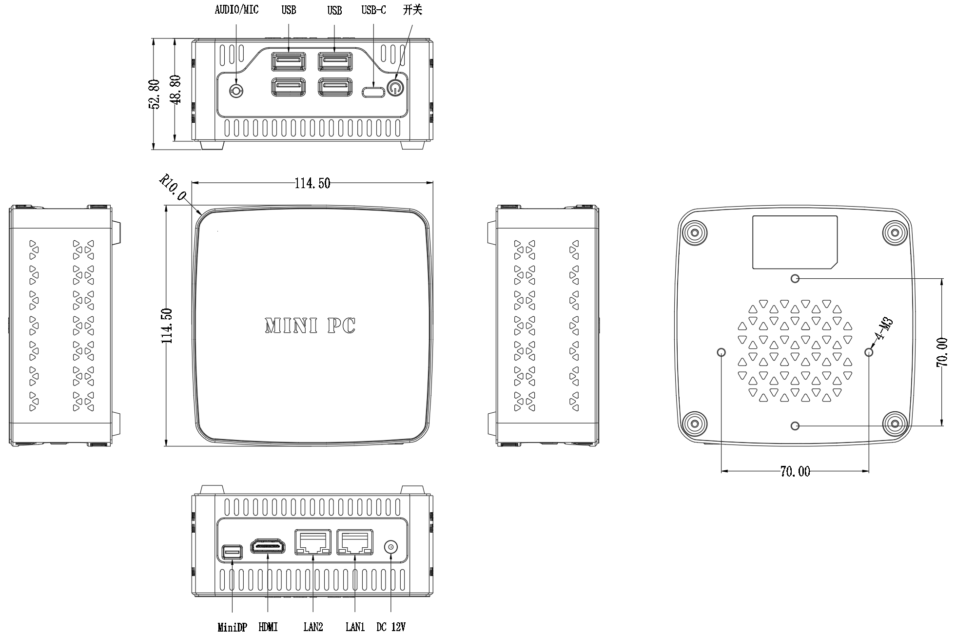 機器尺寸114.5x114.5x52.8mm,天地盒包裝尺寸181*153*112mm;外箱尺寸:485*380*260mm  |