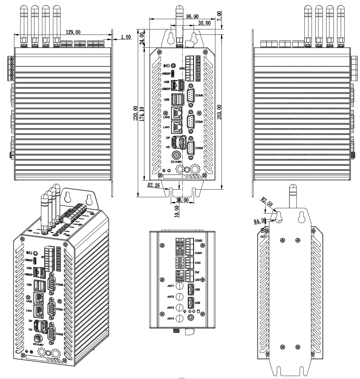 ◆ 2*LAN,4*COM,8*GPIO